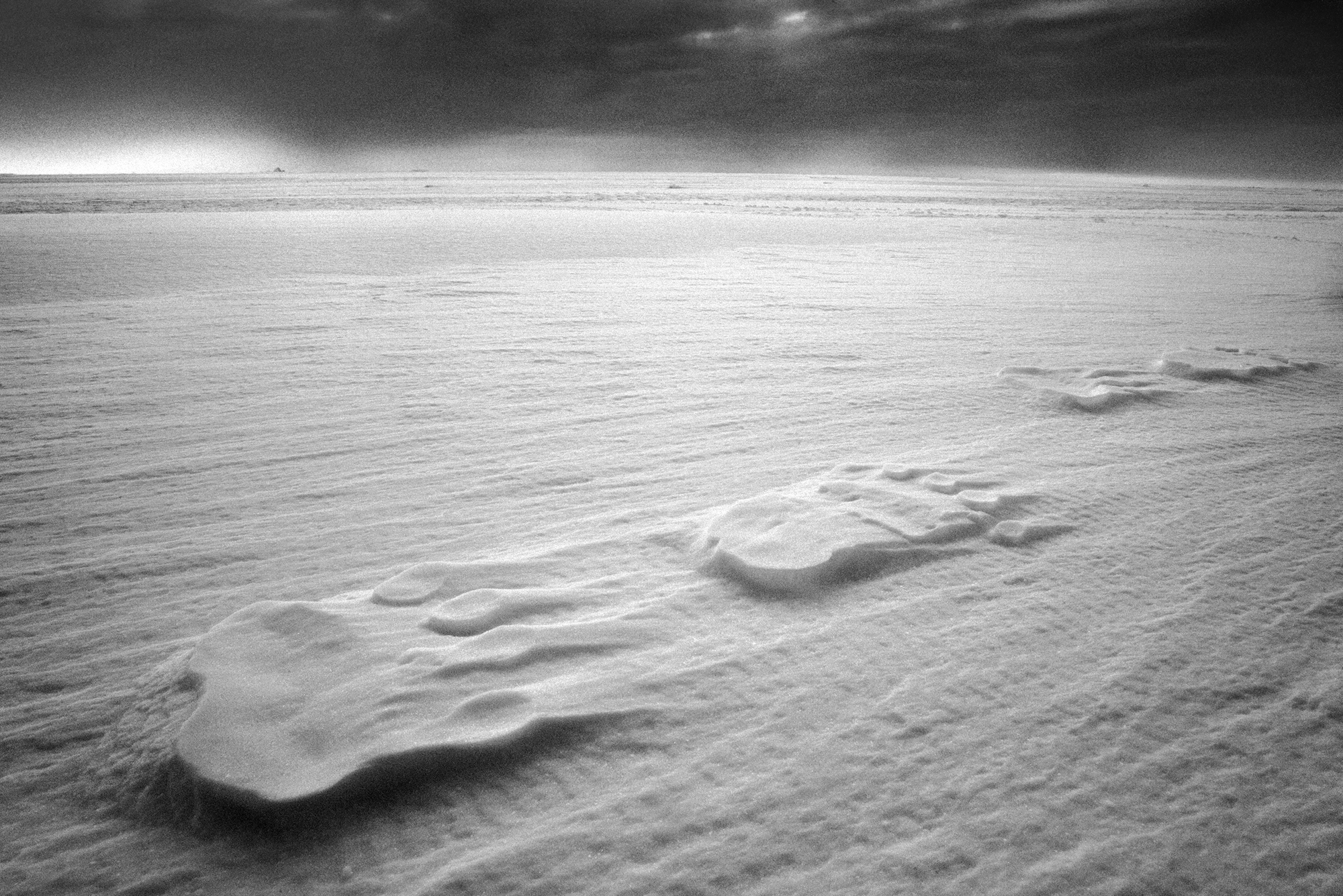 Polar bear tracks on the sea ice, Kangertittivaq, Greenland, 2025